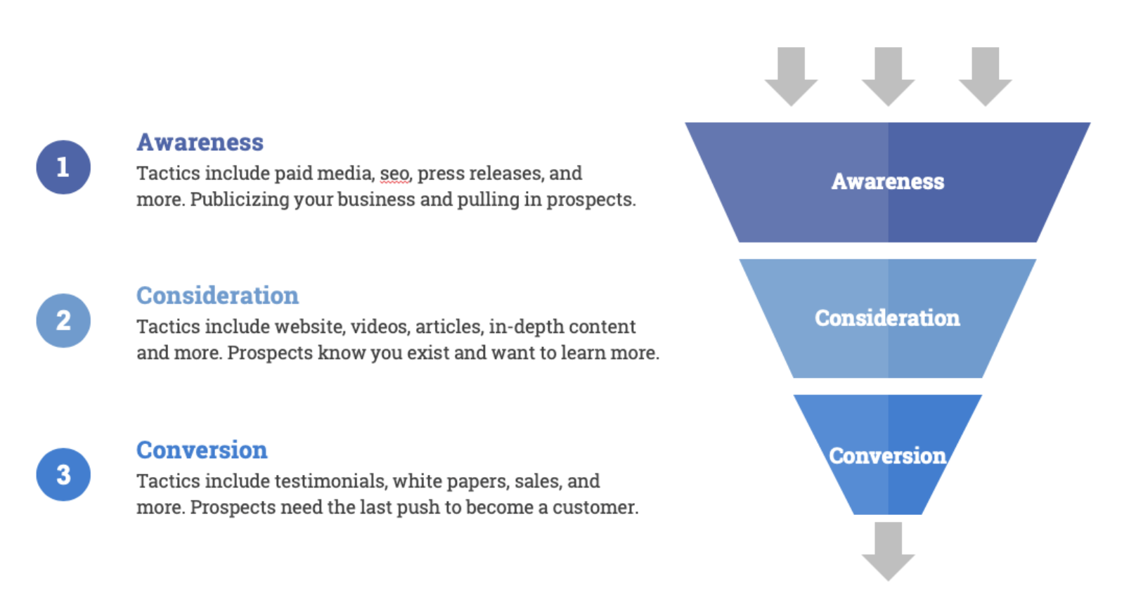 There are many factors that contribute to why a given piece of content does or doesn’t perform. Different types of content serve different purposes within the marketing funnel. For this examination, we will look at content that fits into the awareness phase of the marketing funnel. Click the image below for an introduction to the marketing funnel.